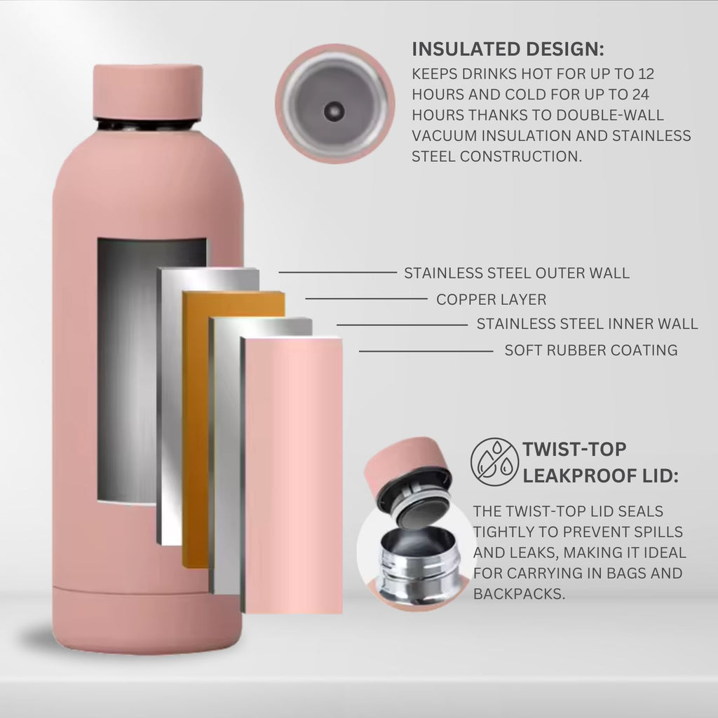 The Open Door Kitchen So Fly 12 oz Dual Copper Insulated Hydration Sport Water Bottle, Double Wall Leak Proof Stainless Steel Bottle with Flex Lid for Sports and Travel, Wide mouth bottle, Cold and Hot Drinks, BPA-Free, keeps drinks cold for 24 hour and hot for 12 hours.